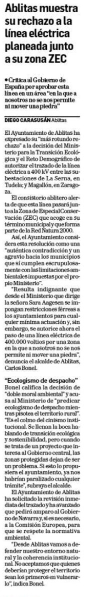Ablitas rechaza la línea de alta tensión que atravesará su territorio.