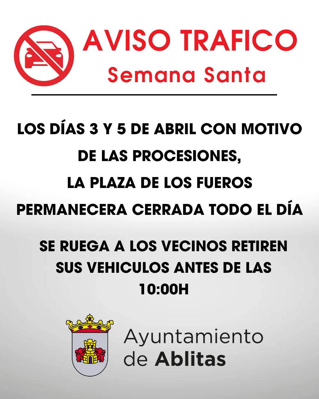 Con motivo de las procesiones de Semana Santa, los días 3 y 5 de abril, la Plaza de los Fueros permanecerá cerrada al tráfico durante todo el día....