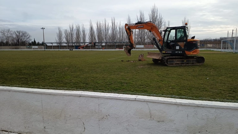 Hoy han arrancado las máquinas para instalar el césped artificial en Ablitas. Con es...