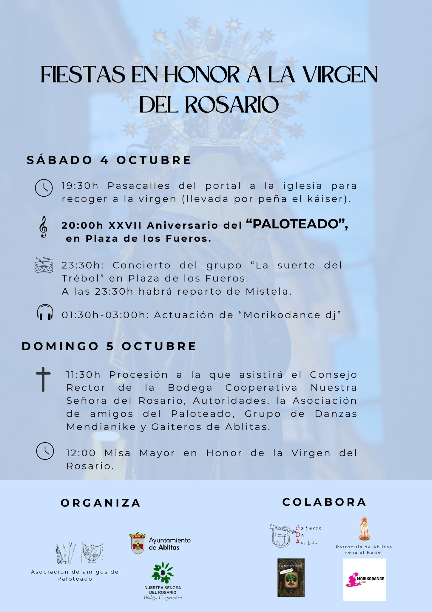 Procesión a la que asistirá el Consejo Rector de la Bodega Cooperativa Nuestra Señora del Rosario, autoridades, la asociación de amigos del paloteado,...