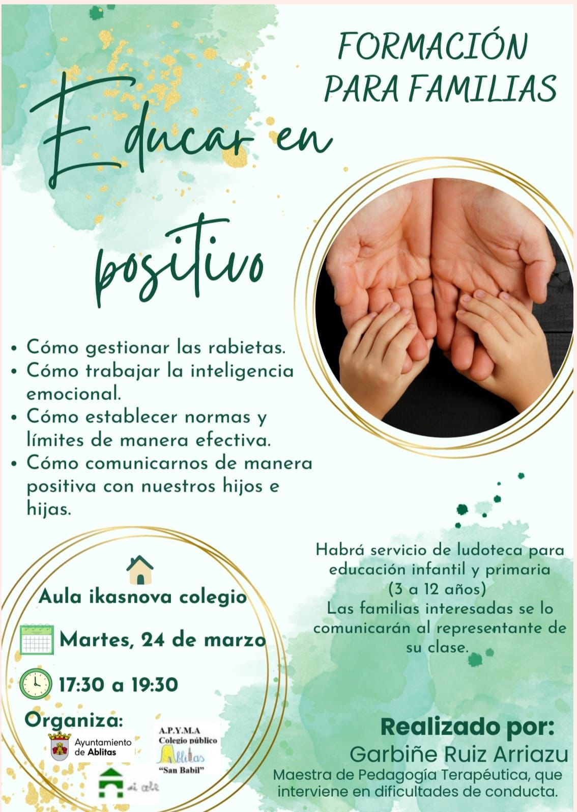 Habrá servicio de ludoteca (3 a 12 años).