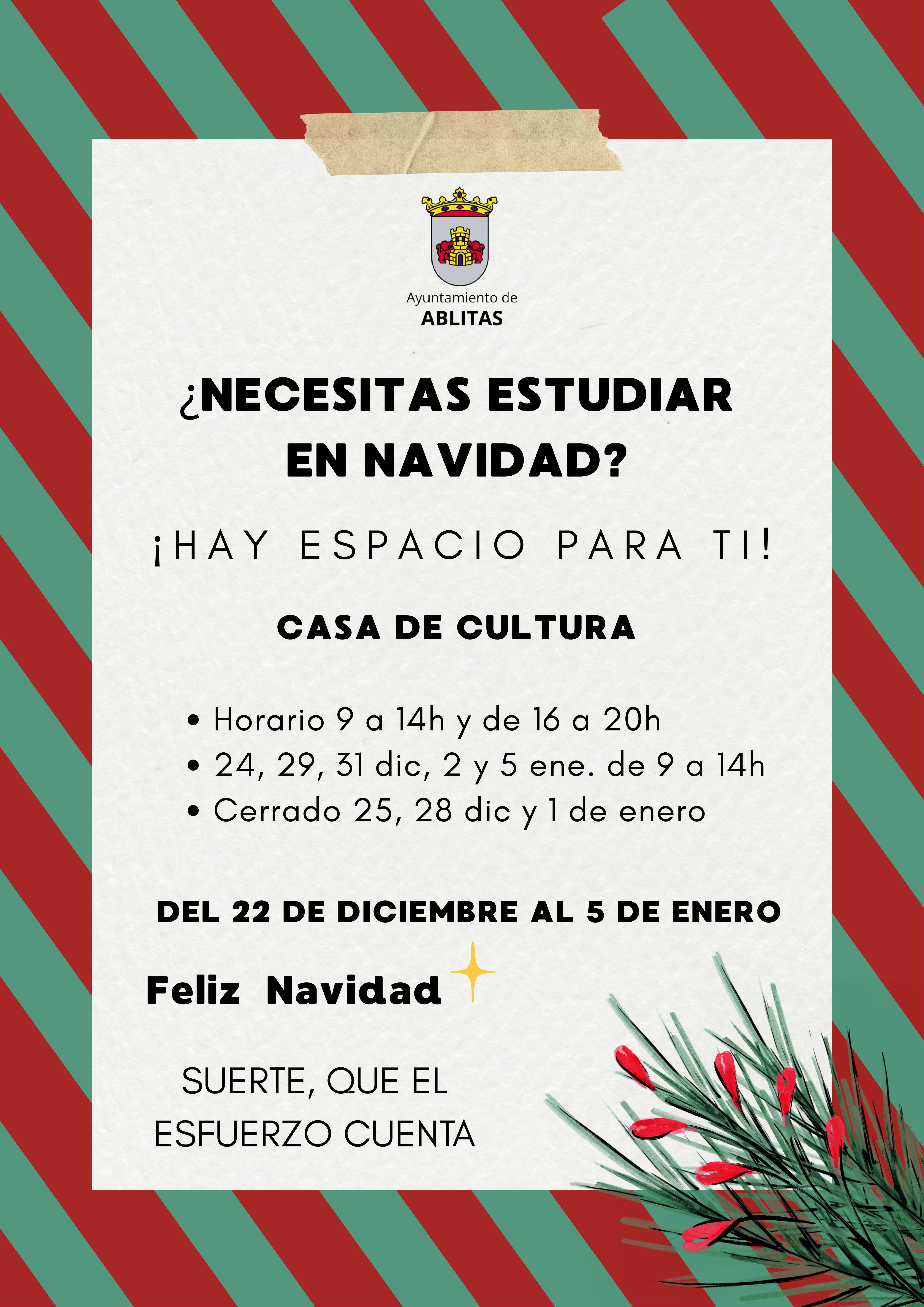 ¿NECESITAS ESTUDIAR EN NAVIDAD? ¡HAY ESPACIO PARA TI!