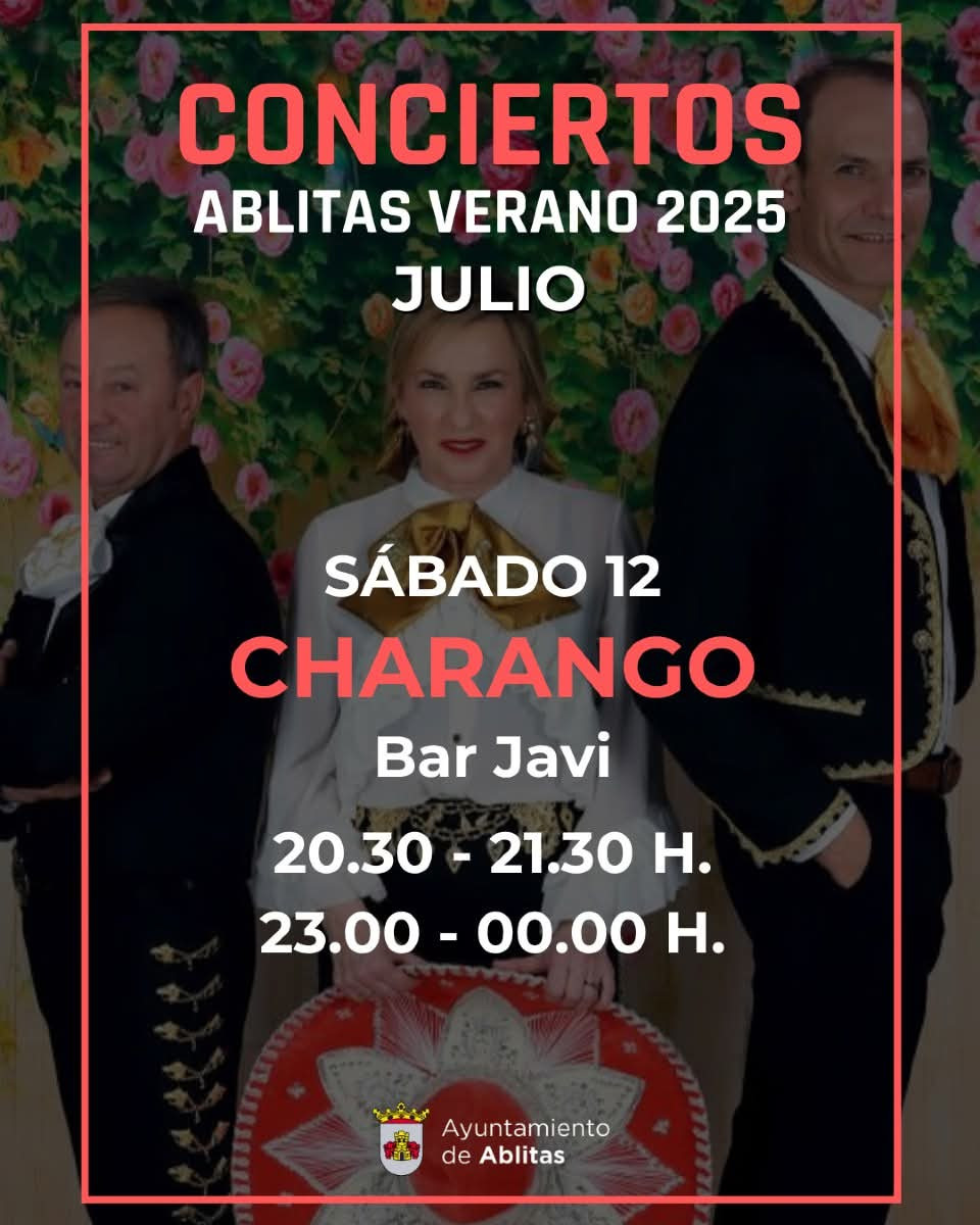 Os recordamos que dentro del plan de conciertos de este verano para que la música no pare en Ablitas, este sábado tendremos, en el bar Javi, la actuación de Charango, que pondrán todo de su parte para hacernos pasar una agradable velada veraniega.