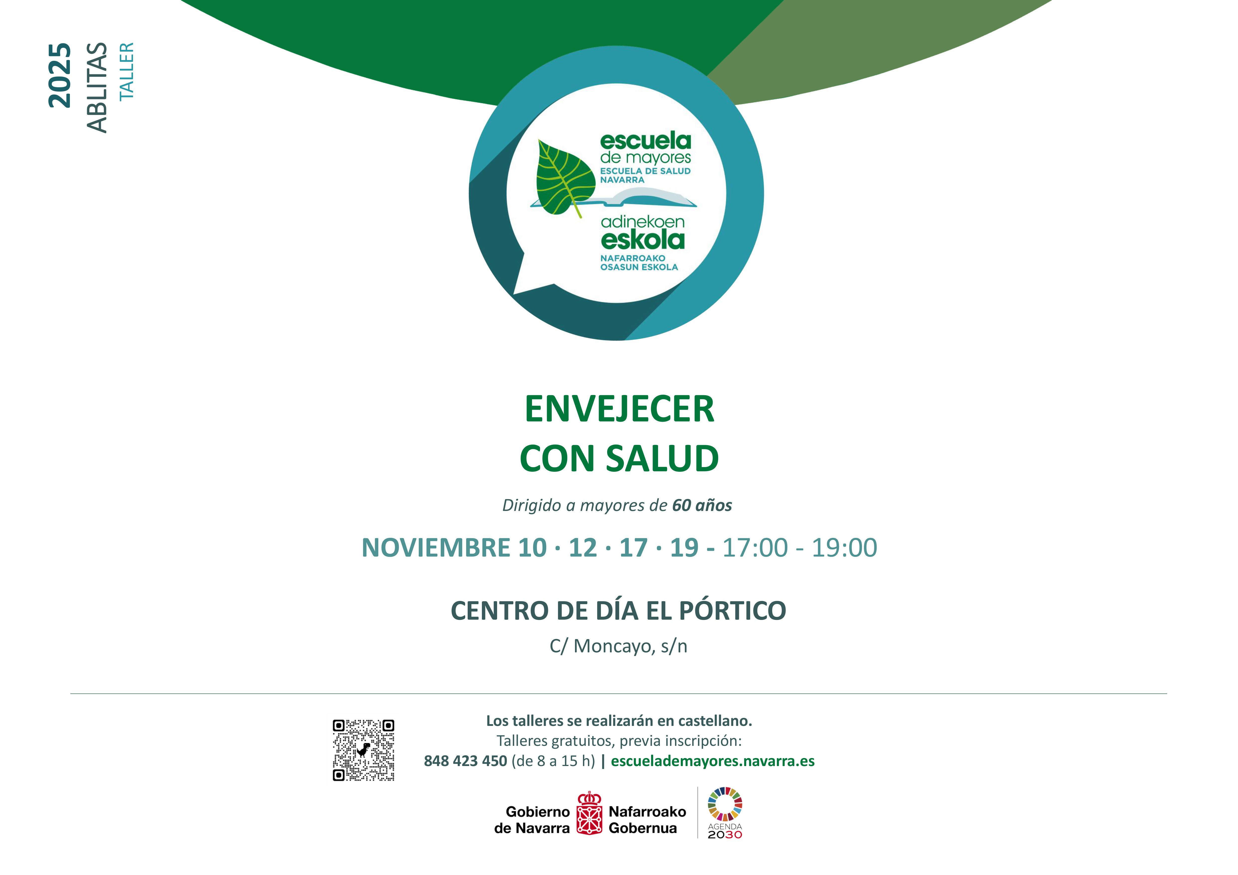 Inscripciones: 848 423 450 (de 8:00 a 15:00 h) || escuelademayores.navarra.es