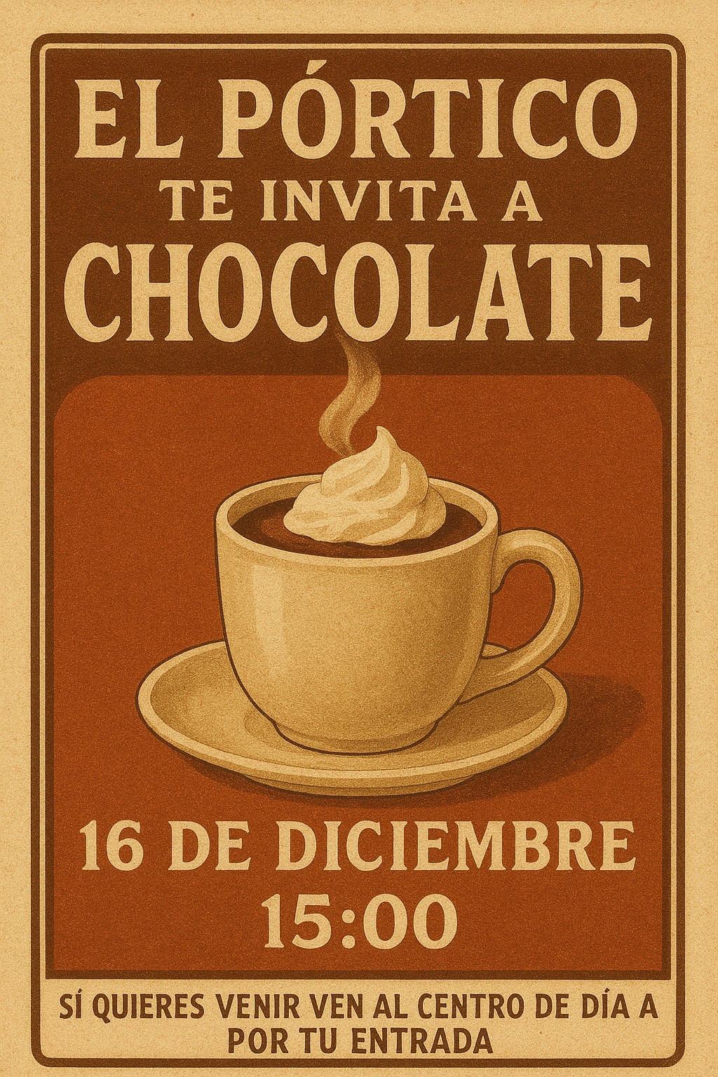 El Pórtico te invita a chocolate. Si quieres venir, ven al centro de día a por tu entrada.