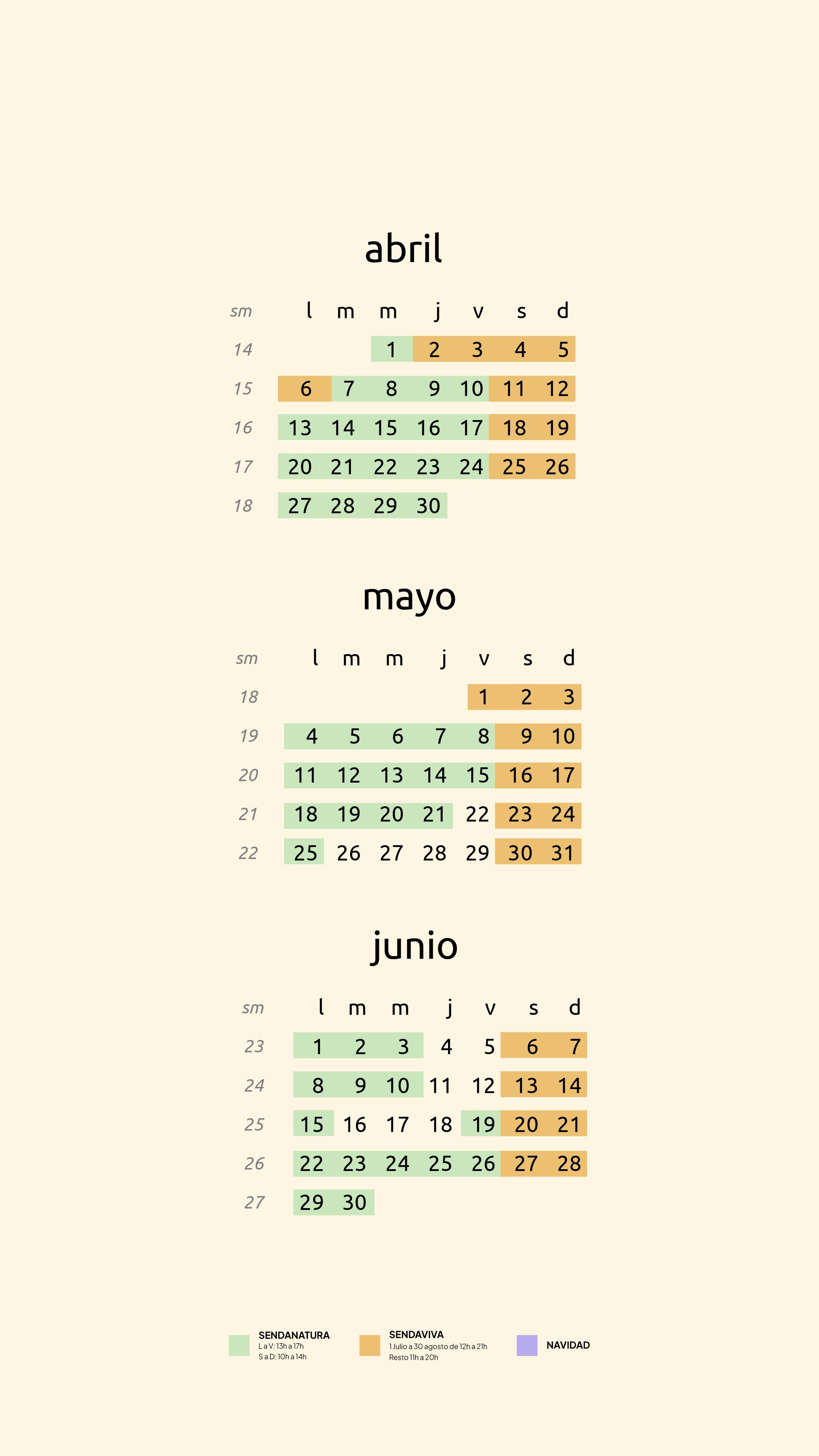 (Días de esta actividad se pueden ver en el calendario adjunto, en color verde)